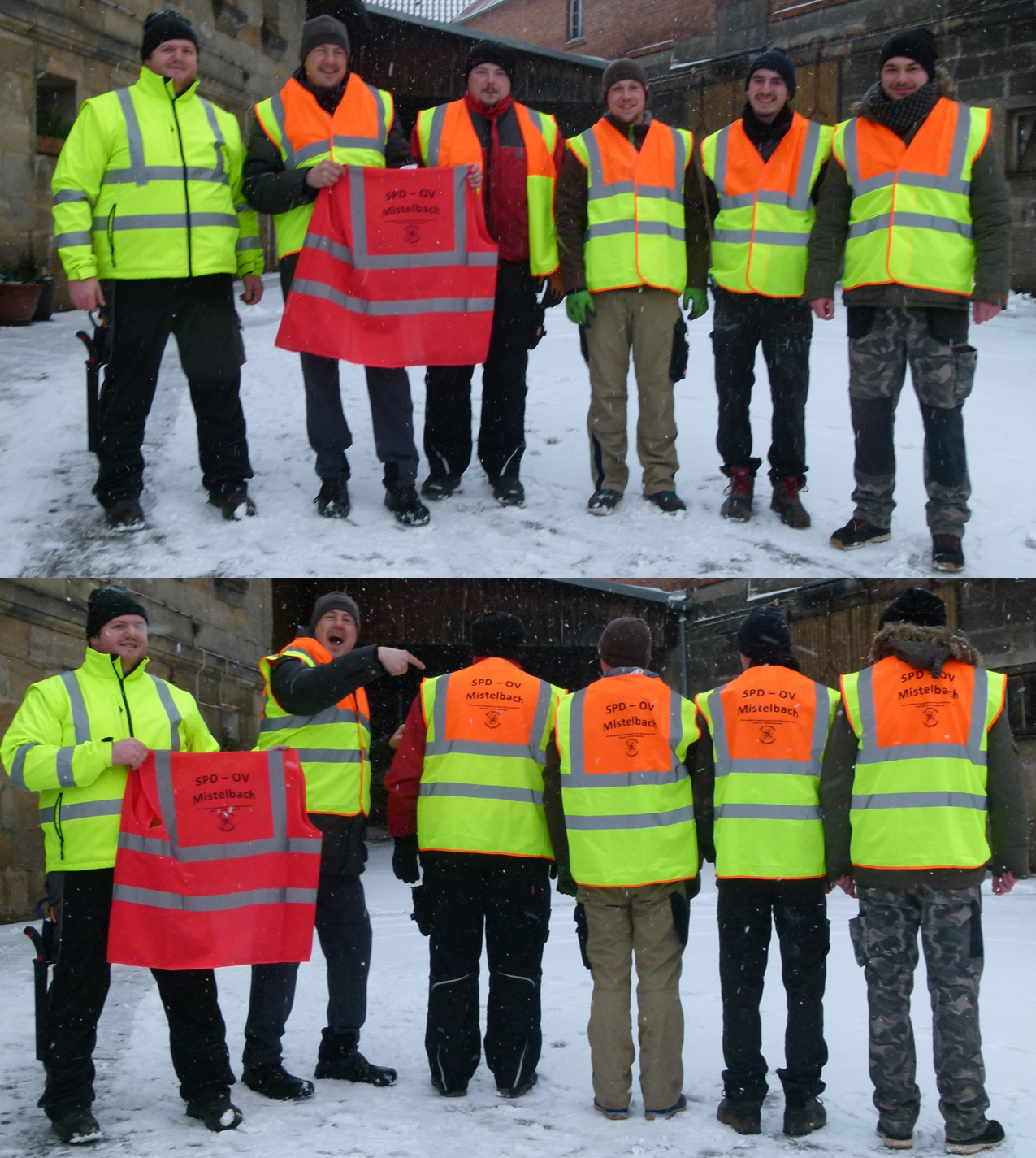 Vor dem Start wartete noch ein neues Arbeitsutensil auf die Helfer. Dieter Illa von der VMI-Concept GmbH übergab dem Team einen Satz Warnwesten, damit alle einheitlich und vor allem sicher gekleidet sind bei dieser Aktion. Herzliches Dankeschön an dieser Stelle.