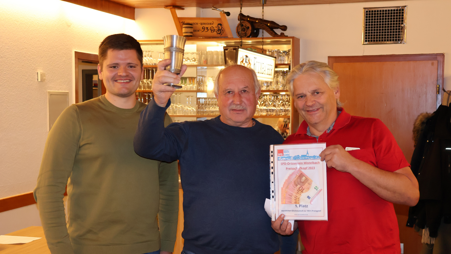 Am Freitag vor dem Ewigkeitssonntag veranstaltet unser Ortsverein immer einen Preisschafkopf in der Gaststätte Großmann. In diesem Jahr gewann Wolfgang Freitag mit 1.260 Punkten, vor Ingo Riediger (1.130) und Margitta Seiferth (1.070). Als bester Mistelbacher darf sich Friedrich Rackelmann (1.015) nun Ortsmeister nennen und den Wanderpokal mit nach Hause nehmen.